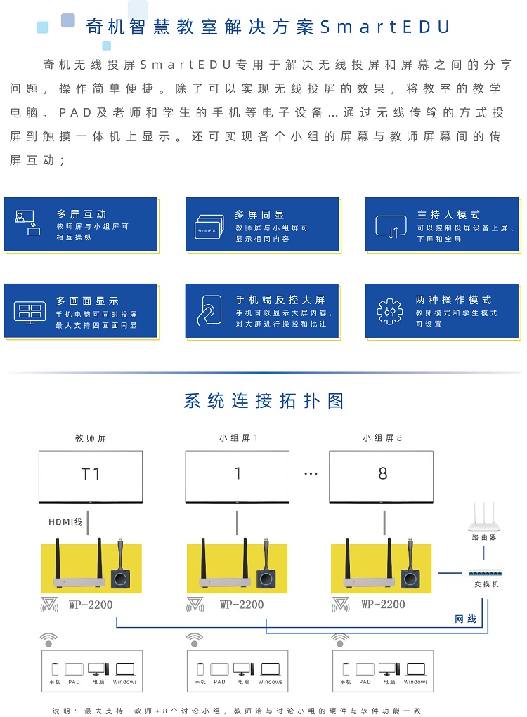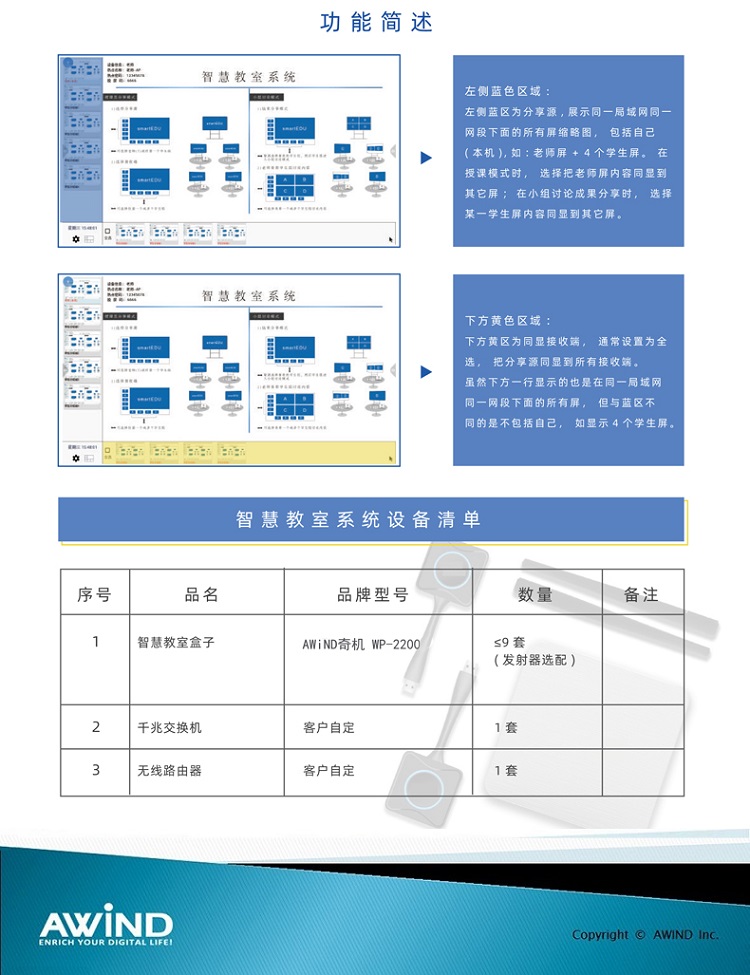 AWiND奇機WP-2200無線投屏器智慧教室系統無線分享交互協作多屏互動盒子