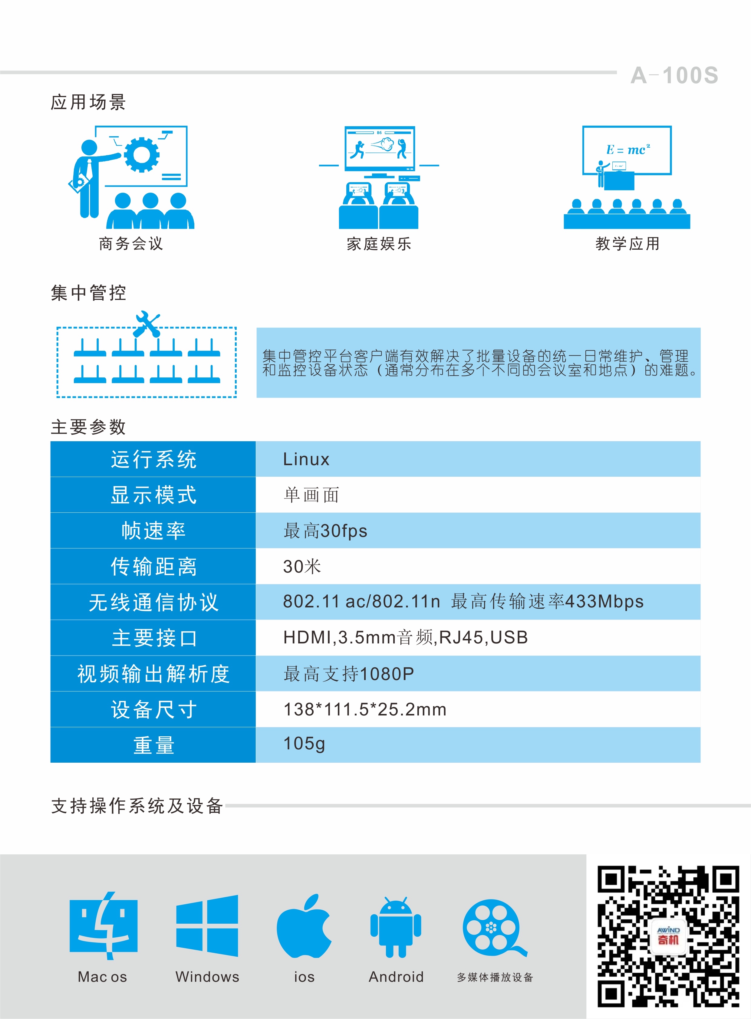 操作系統(tǒng) | Windows 7/8.1/10 32和64位 MAC OS X 10.10/10及以上 支持智能手機(jī)無線投屏 兼容airplay功能,推薦使用iOS9及以上 OS X 10.10及以上 支持miracast功能(無需切換主機(jī)WIFI配置) Android 5.0和更高版本(需安裝APP) |
