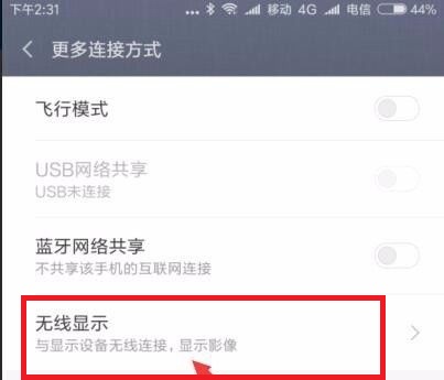 在打開的更多連接方式頁面中,點擊“無線顯示”菜單項。