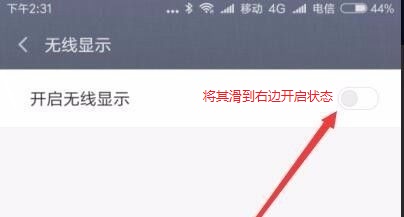 在打開的無線顯示頁面中,點擊“開啟無線顯示”后面的開關(guān),使其處于打開狀態(tài)。